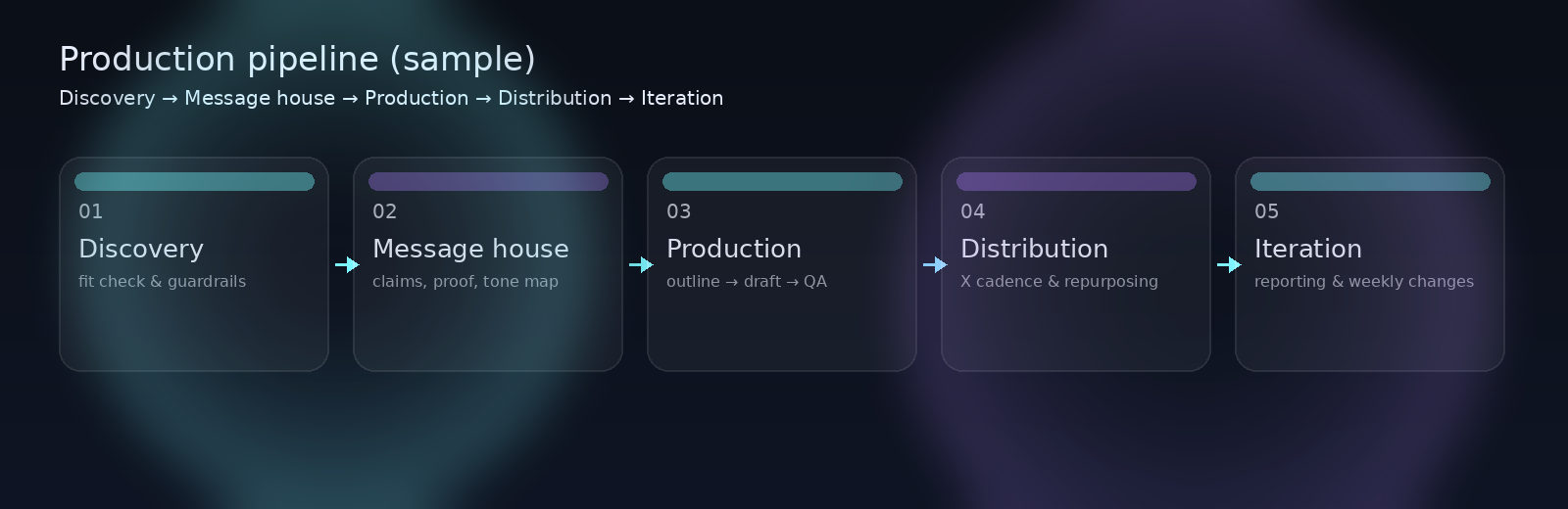 We don’t do performative hype. We communicate credibility through editorial systems, repeatable delivery, and claims that withstand scrutiny.